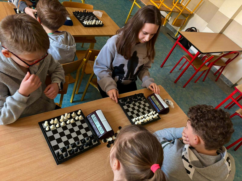 Szkolny Klub Szachowy „Szach MAT” to miejsce, w którym uczniowie rozwijają swoje talenty szachowe, a także doskonalą umiejętność gry w warcaby. Na co dzień ćwiczymy, doskonalimy strategie gry, ale wczoraj odbyło się wyjątkowe wydarzenie – pierwszy etap naszego turnieju szachowego! Zawody zostały przygotowane i poprowadzone przez Mateusza z klasy IVc, który wykazał się ogromnym profesjonalizmem.